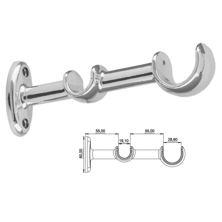 VARA CORTINA ALUM CROMADA 28MM 2,50MT -> UN VARA CORTINA FERRO CROMADA 2.00MTS