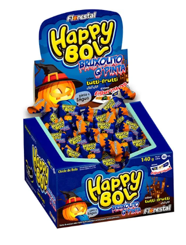 Produto: CX CHICLE HAPPY BOL BRUXO Q PINTA 140G -> UN.